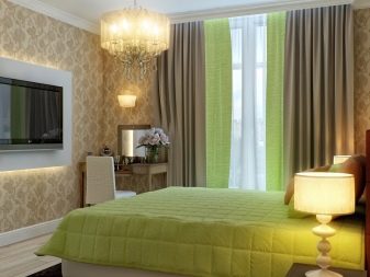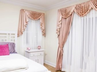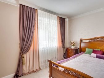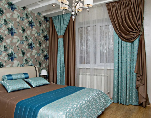 Perdeler diğer tasarım öğeleriyle birleştirilmelidir: dekorasyon, dekor, mobilya. En iyi tasarımcılar, odayı dönüştürebileceğiniz sıradan perdelerle ilginç çözümler sunar. En popüler seçeneklerden biri, yatak odası için tasarlanmış çift perde olarak kabul edilir.
