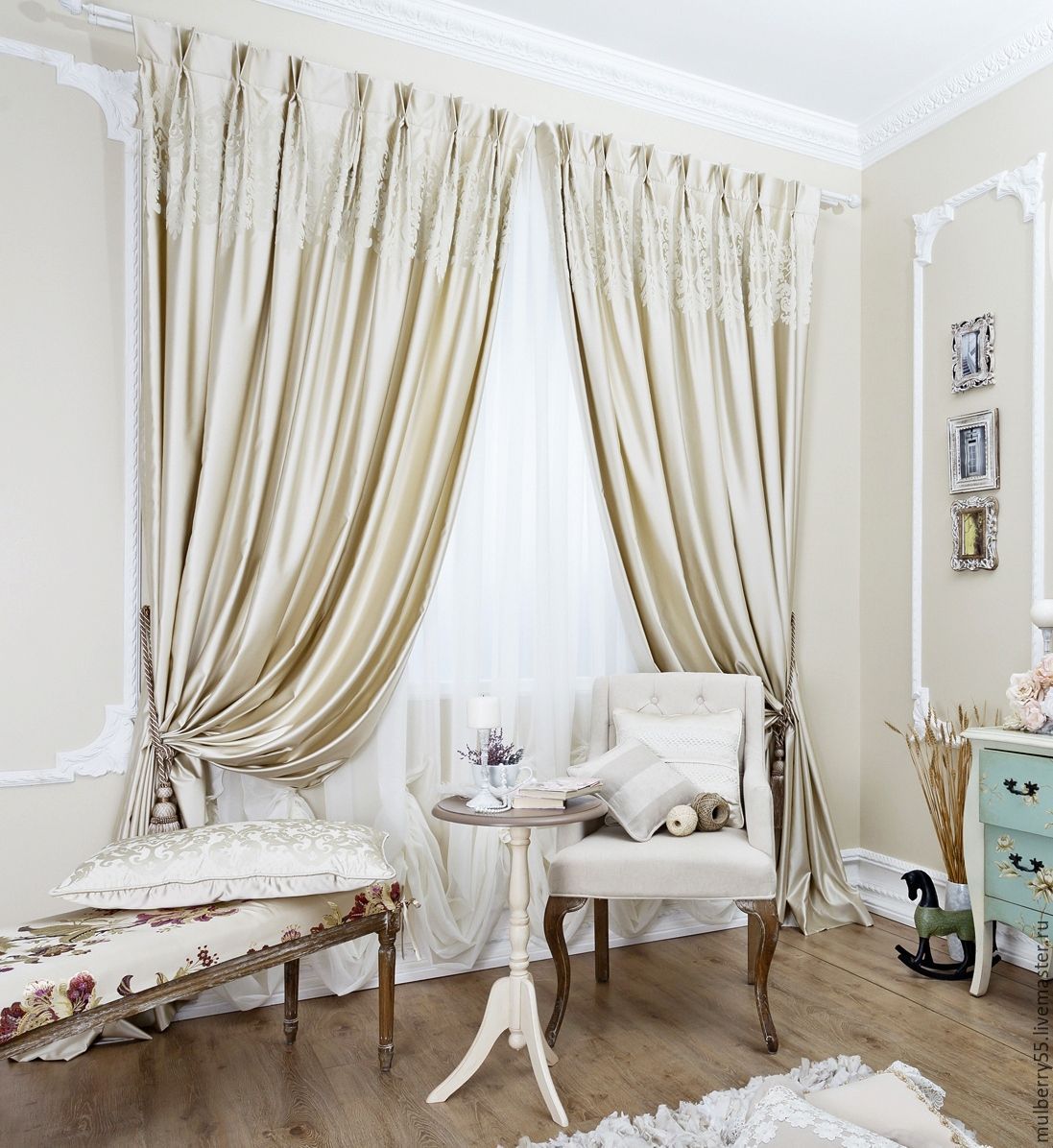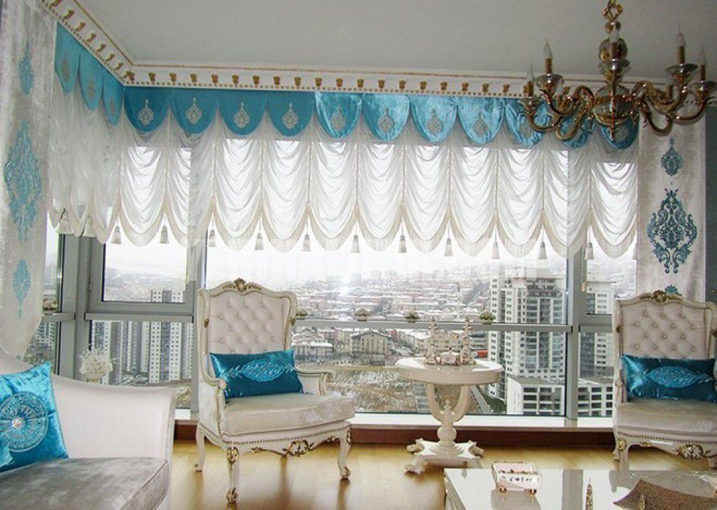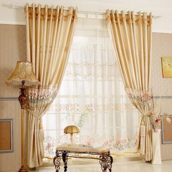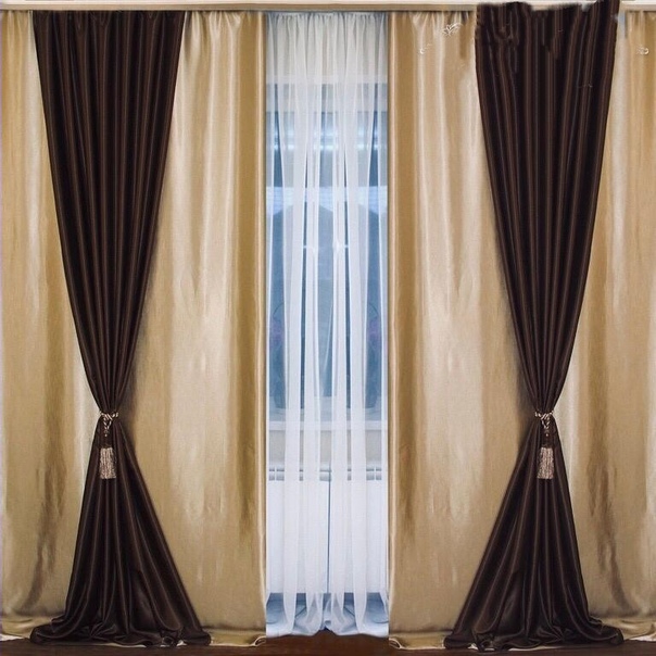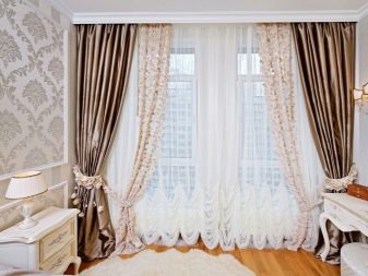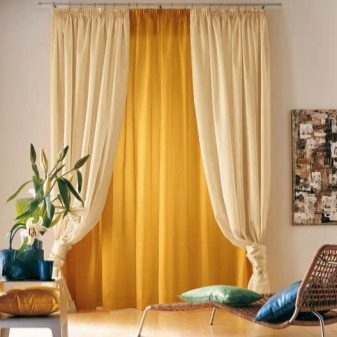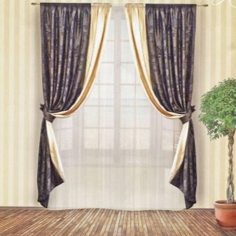 Kalın perdeler ve hafif tül kombinasyonu klasik olarak kabul edilir. Sadece tül değil, yarı saydam organze de kullanabilirsiniz.