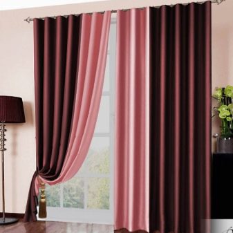 Aynı zamanda, farklı malzeme seçeneklerini kullanabilirsiniz - ışık perdeleri ve biraz daha yoğun olanlar. Bu kombinasyon klasik olarak kabul edilir ve yüz yıldan fazla bir süredir iç mekanlarda başarıyla kullanılmaktadır. Bu yöntem, alanı görsel olarak genişletmenize ve gerekirse daha açık veya daha koyu hale getirmenize olanak tanır. Ürün yelpazesinde yatak odası için çok çeşitli kumaş ve perde renkleri bulabilirsiniz.