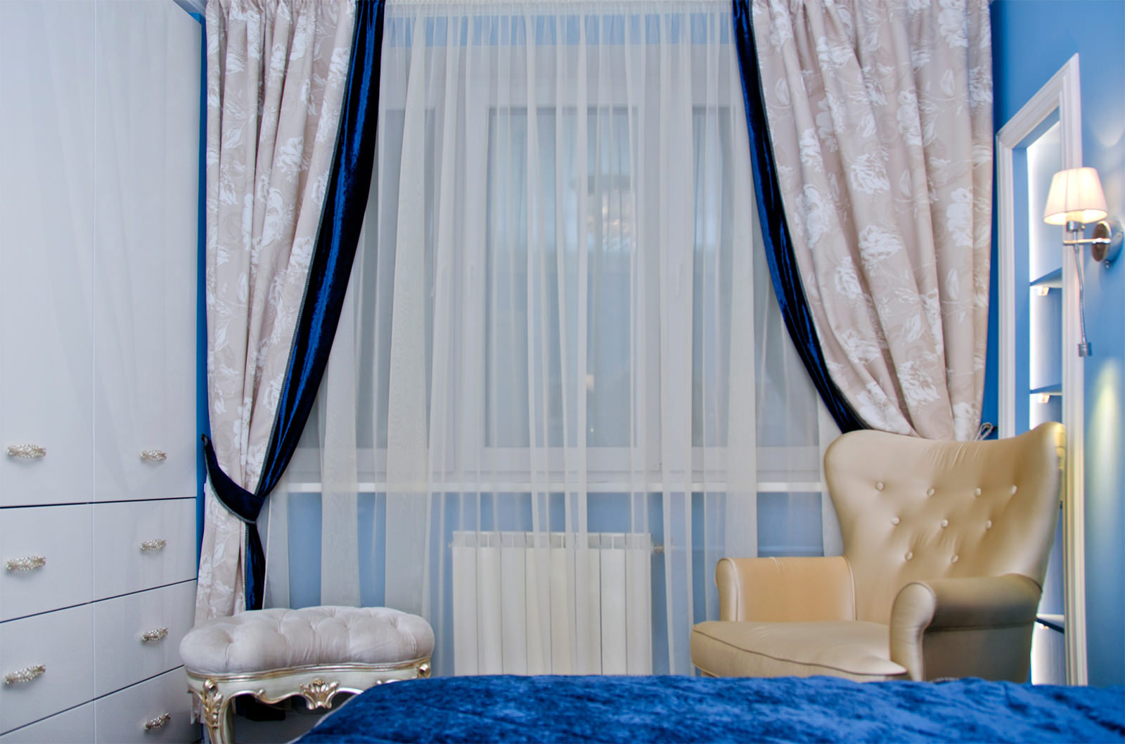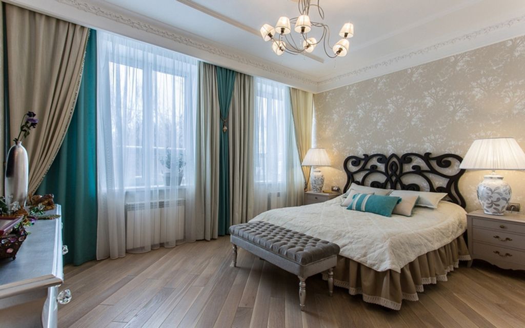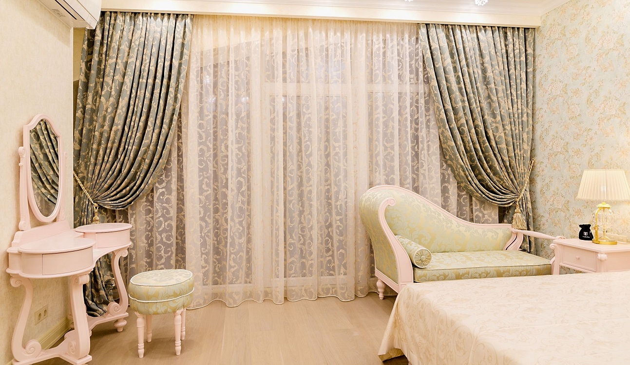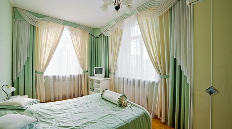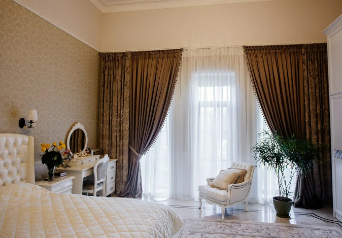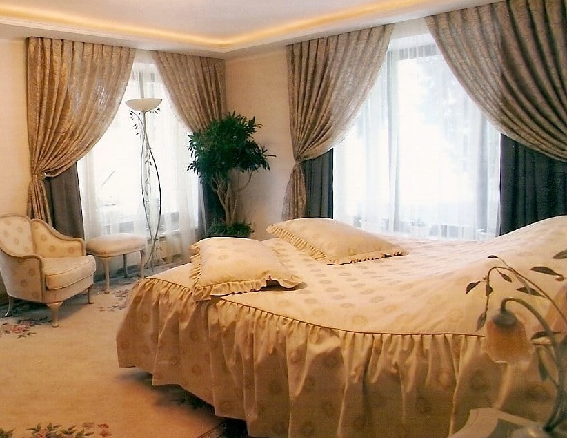 Yatak odasında çift perde hakkında bilmeniz gereken her şey