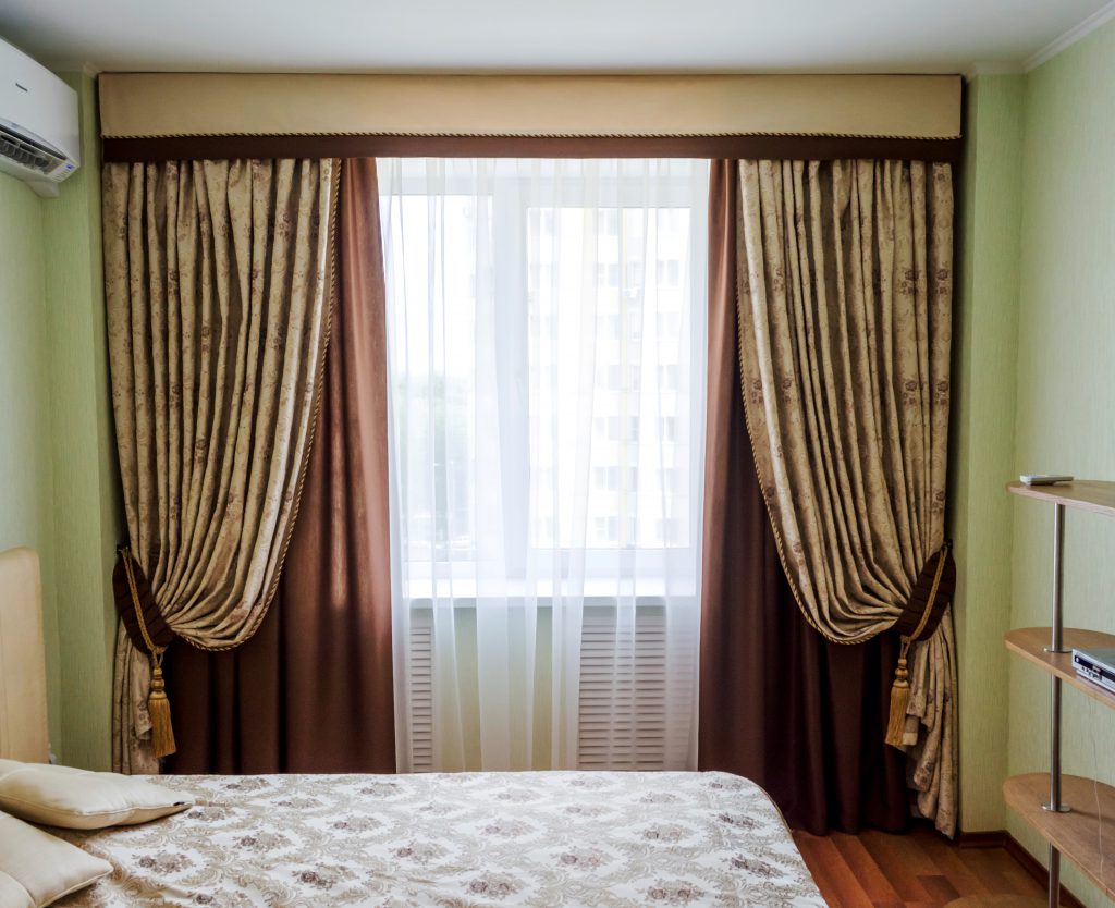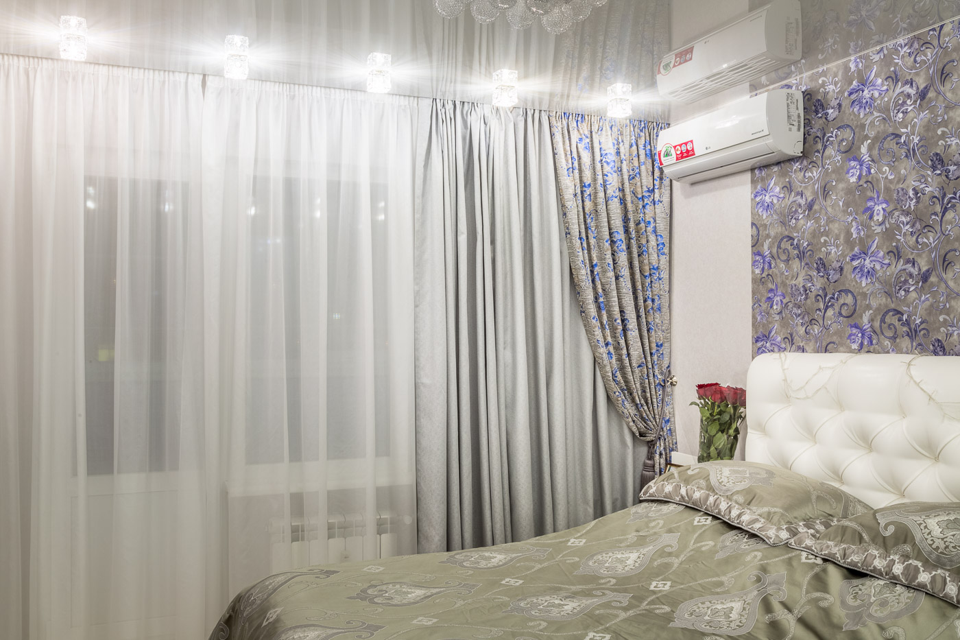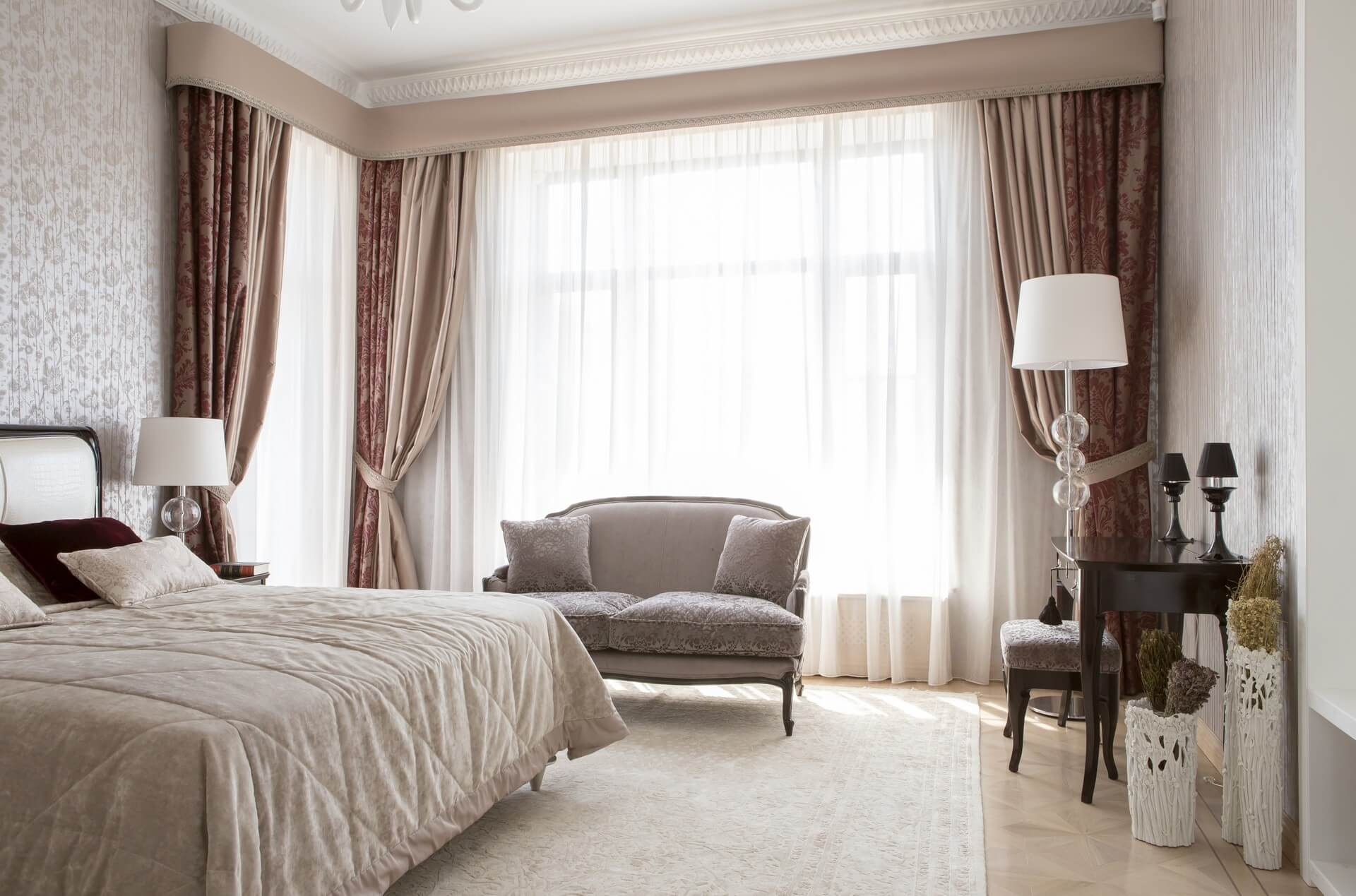 Yatak odasında çift perde hakkında bilmeniz gereken her şey