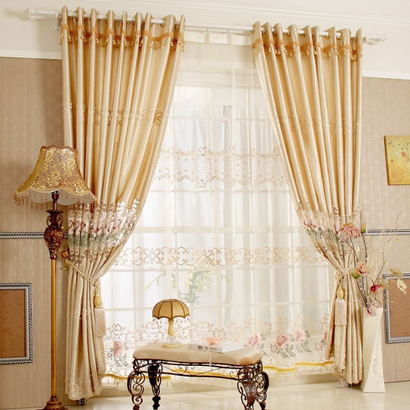 Örneğin, doğal kumaşlardan (pamuk veya keten) yapılmış perdeler, ülke tarzı için mükemmeldir. Barok tarzındaki klasik odalar veya odalar için lüks kumaşlar kullanmak daha iyidir - organze, brokar, kadife veya saten çok uygundur. En son kumaş çeşitleri oldukça dayanıklıdır.