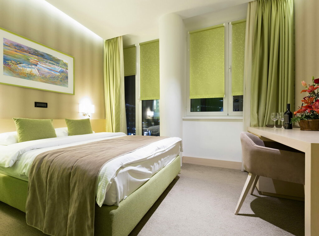- yeşil spektrumun tüm tonları kullanılarak bir huzur ve uyum atmosferi yaratılabilir;