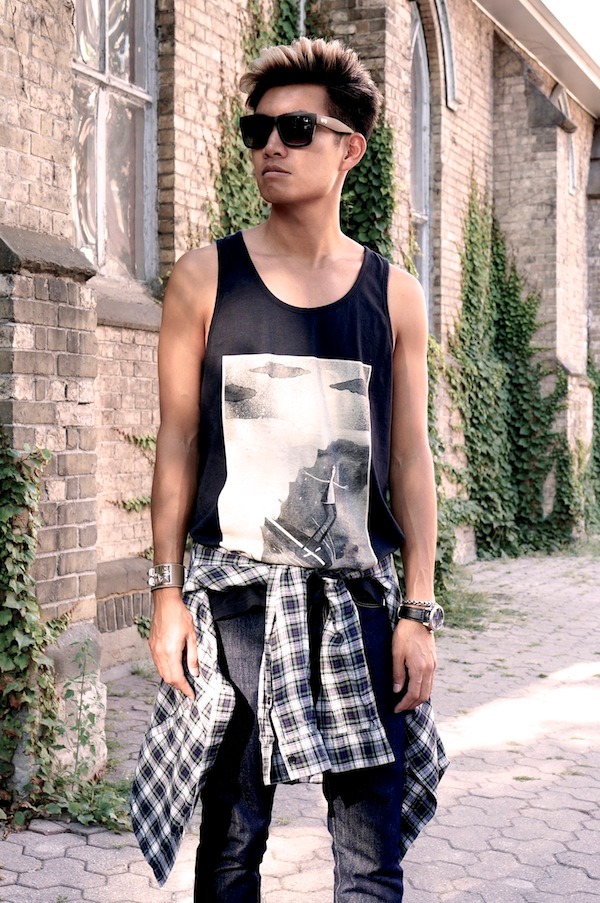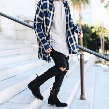 Tipik grunge hilelerinden biri, bele bağlanan ekose bir gömlek. Bu detay, görünümü daha rahat ve hafif hale getirir.