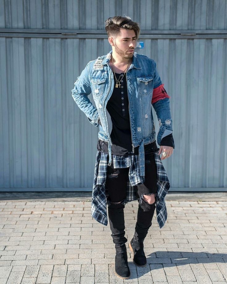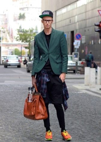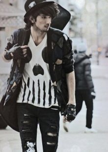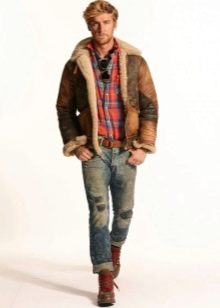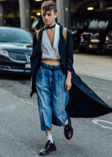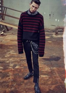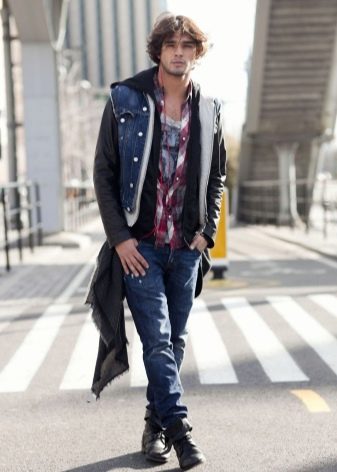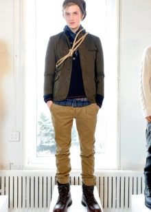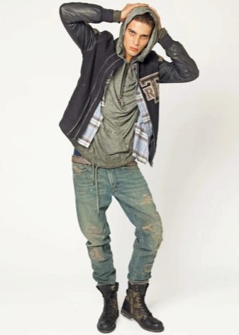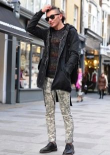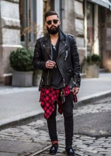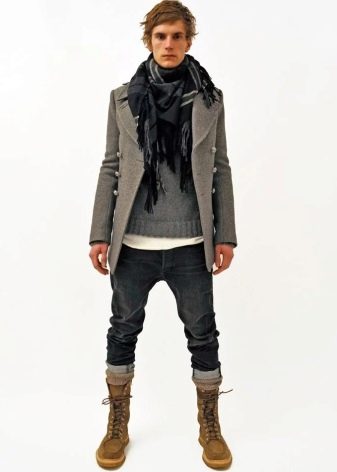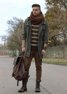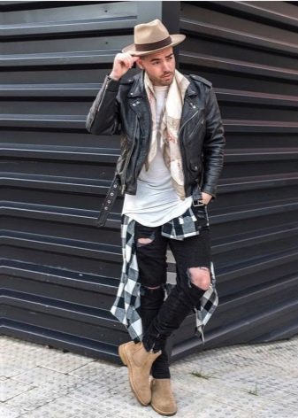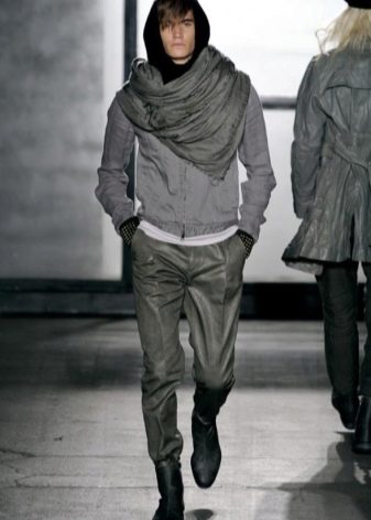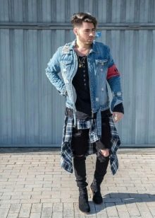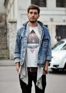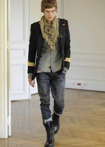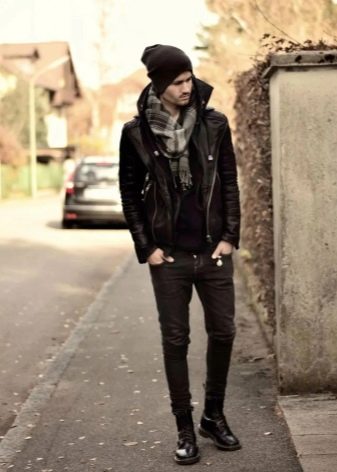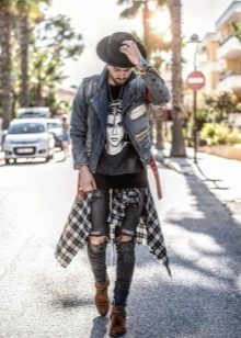 Bu yöndeki görselde ceketleri güvenle kullanabilirsiniz. Ana şey, görüntünün yıpranmış unsurlarını başarıyla tamamlayacak bir model seçmektir. Boyun atkısı, mevcut birkaç aksesuardan biridir.