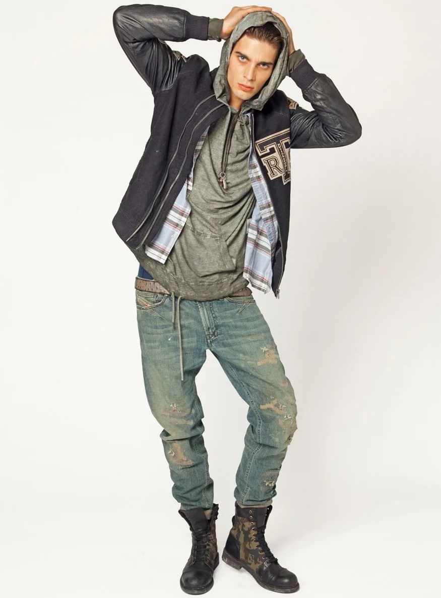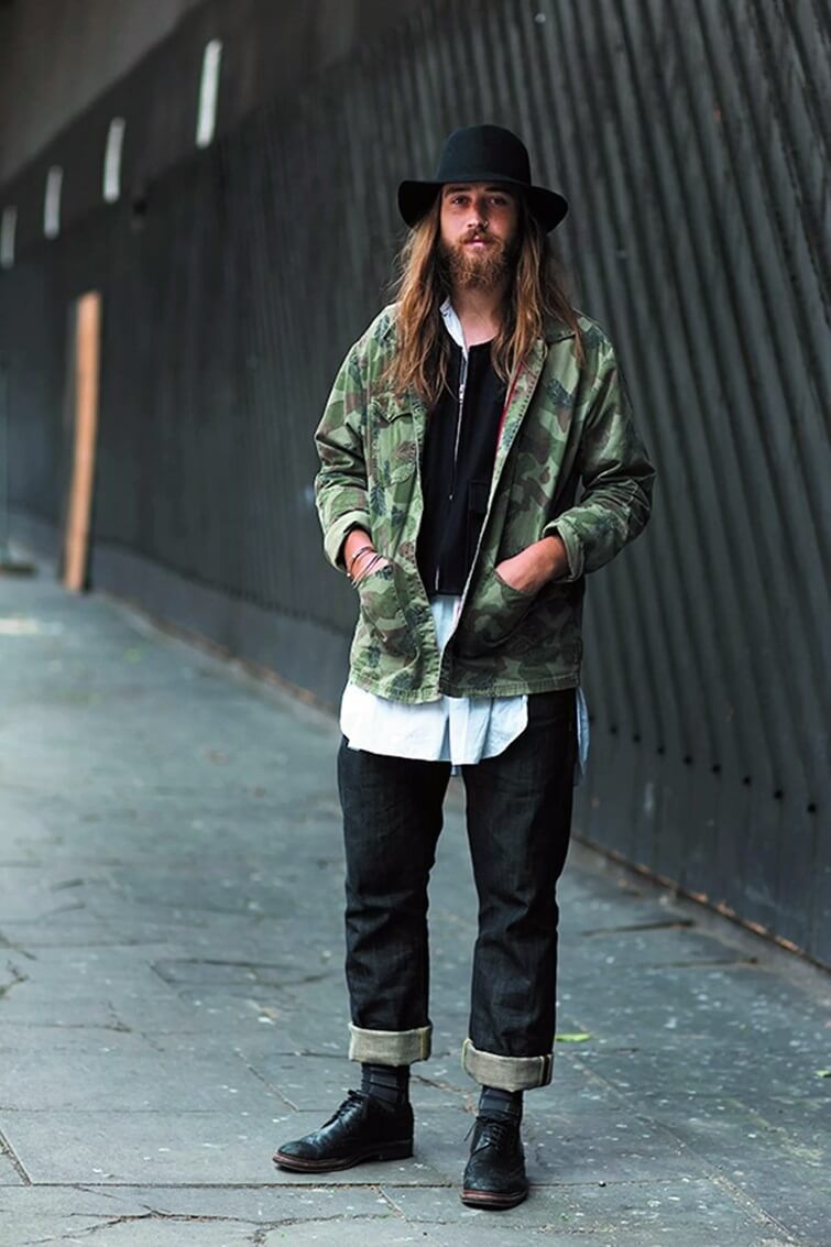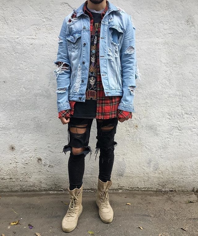 Erkek giyimindeki grunge tarzı, bir zamanlar lüks ve burjuva değerlerine karşı bir protesto olarak kıyafetleri kullanan rock isyancılarından ilham aldı. Yırtık kot pantolonlar, büyük boy kazaklar ve acımasız askeri botlar bu tarzda ortaya çıktı. Parlaklık eksikliği, kasıtlı ihmal, markalar için yarışmayı reddetme, pratik olarak yeni bir moda felsefesi haline geldi. Aynı zamanda, grunge tarzında tüm giyim koleksiyonları oluşturulmaya başlandı.