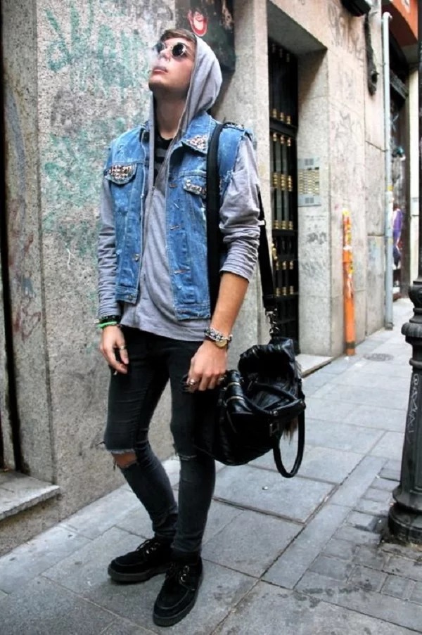 Grunge görünümünüzde katman kullandığınızdan emin olun. T-shirt, gömlek, sweatshirt ve kot yelek ilginç ve zorlu bir çözüm.