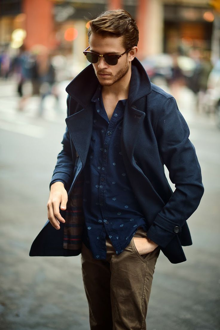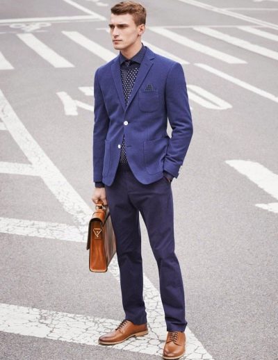 Gömlekler, ceketler mavi kumaşlardan veya gölgelerden dikilebilir. Güzel, şık ürünler, bir erkeğin başarısı olan liderlik eğilimleriyle başkalarına ilham verecek. Mavi renkteki gardırop ürünleri çok yönlü tonlarla kombinlenebilir. Süet günlük kıyafetleri dikmek için kullanılır. Diğer renklerle iyi gider ve stil elde etme açısından cesur deneyler için uygundur.