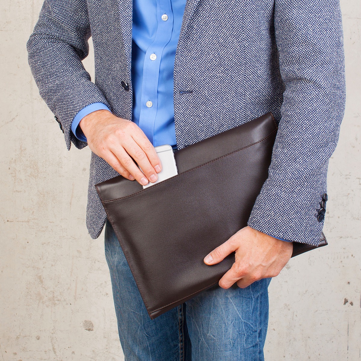 A4 boyutundaki erkek çantası, içindeki belgelere rağmen oldukça hafif. Aynı zamanda, şey çok kompakt görünüyor.