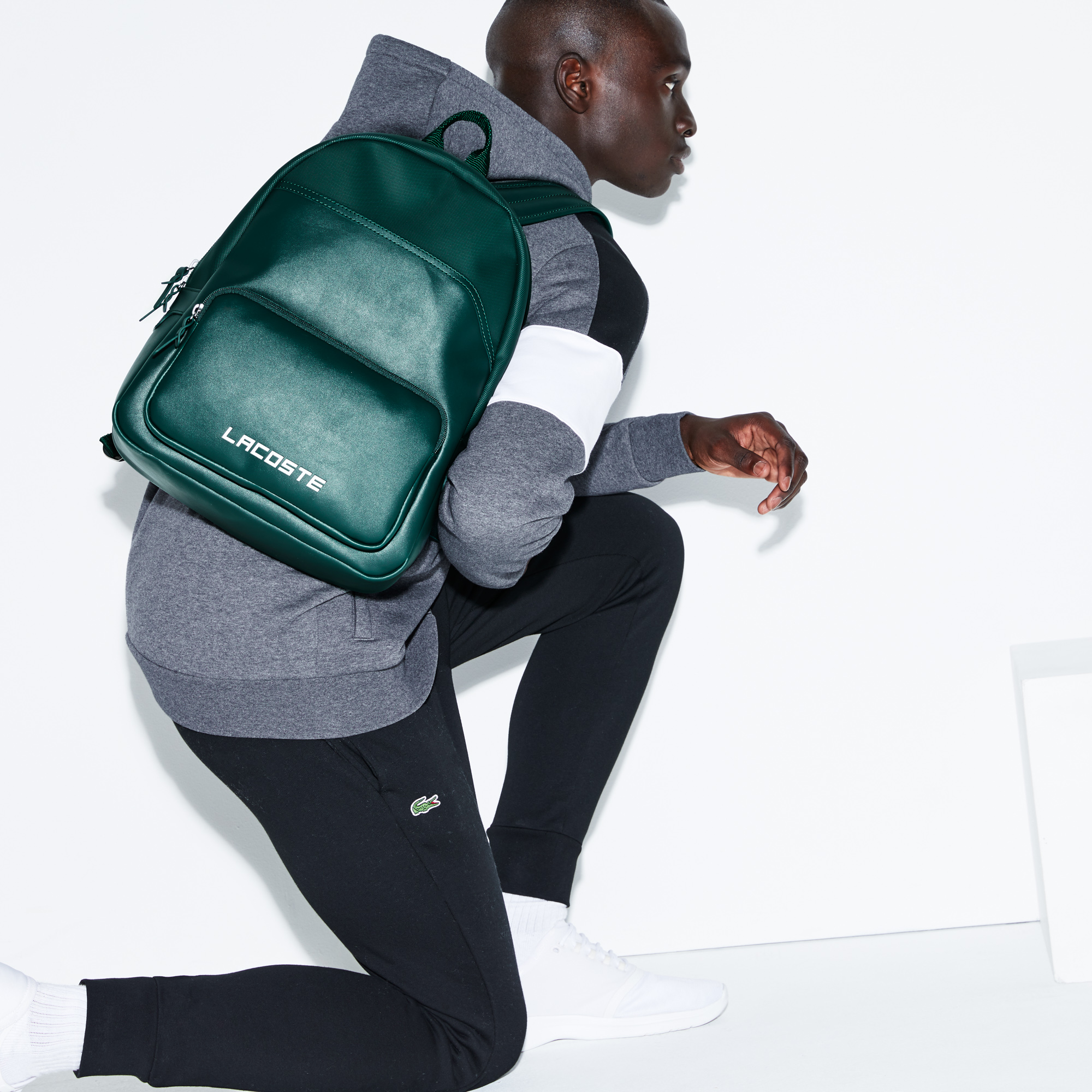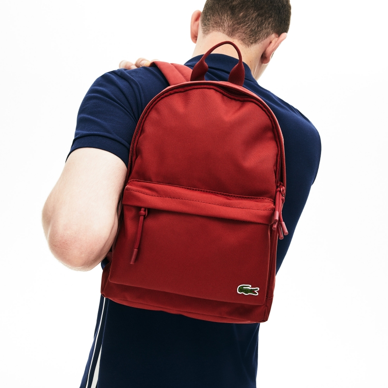 Lacoste markasının erkek çantaları için popüler seçeneklerden biri kalın malzemeden yapılmış sırt çantası... Fermuarla kapanır, bir iç bölmesi ve 3 yama cebi, dışta 1 fermuarlı cebi ve istenirse ayarlanabilen askıları vardır. Sırt çantasının üretiminde kullanılan kumaş polyesterdir.