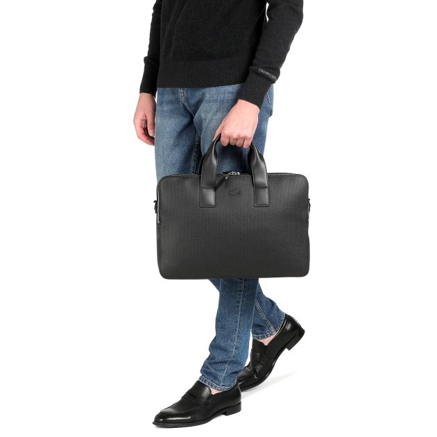 Lacoste Laptop Çantası siyah renkte mevcuttur. Bu, gereksiz hiçbir şey içermeyen uygun bir üründür. Gizli tasarım ve pratiklik, rahat kullanım sağlar. Poliamidden yapılmıştır. Omuz askısı dahildir.