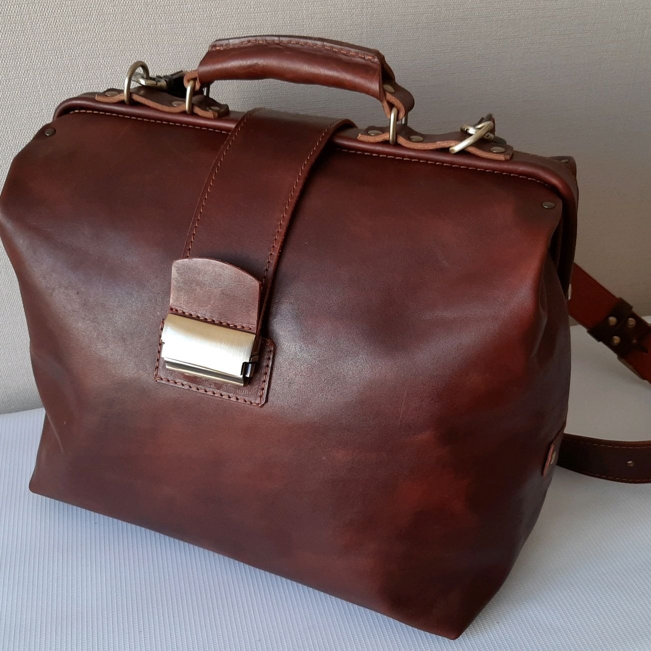 Çanta genellikle normal bavulun yerini alır.... Diğer çanta türlerinden farklı olarak, sadece deriden yapılmıştır.