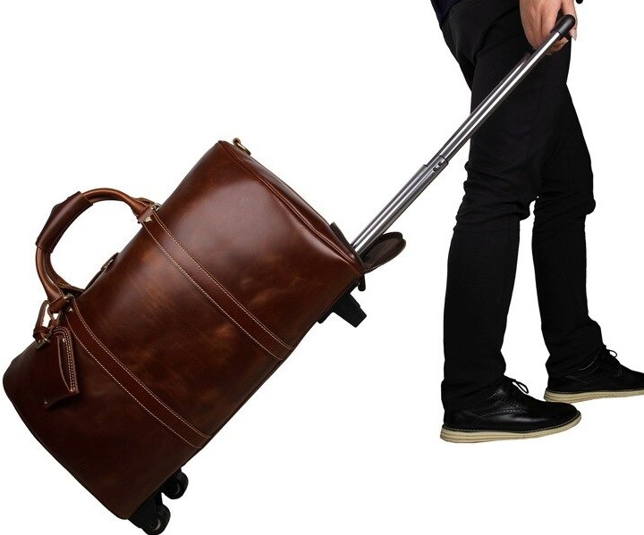 - Tekerlekli seyahat çantası... Bu, ek bir tutamağa ve yerleşik tekerleklere sahip yol modellerinden biridir. Bu tasarım özelliği sayesinde çanta zemin yüzeyinde yuvarlanabilir. Bu seçenek tatile giden erkekler için önerilir.