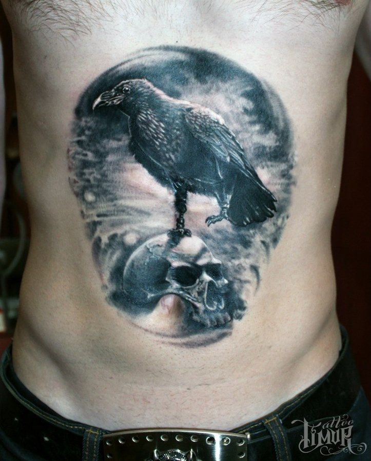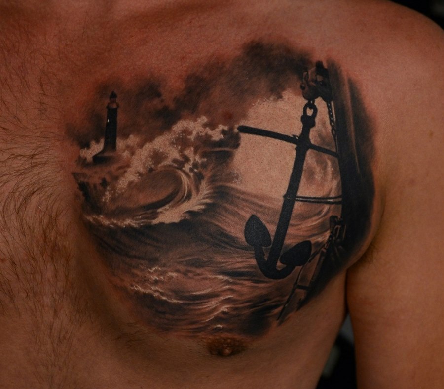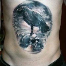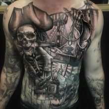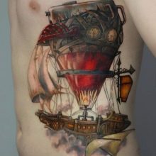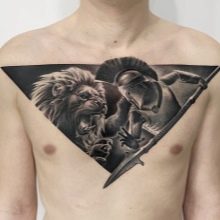 Hacimsel görüntüler en iyi sternum ve düz karın üzerine yerleştirilir. Büyük sırt dövmeleri daha az etkileyici görünmüyor.