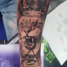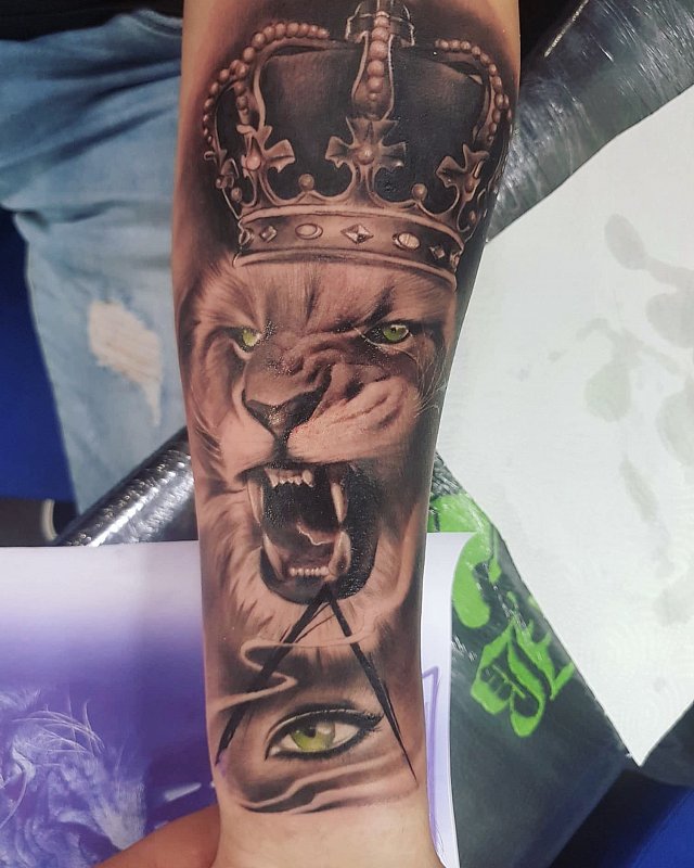 Orijinal arsa, ağır bir tacı ve bir baykuşu olan bir aslan. Birkaç figürün bağlantısı, dövmeye gömülü özel bir anlam yaratır.