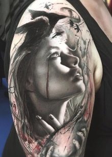 Modern renkli erkek dövmeleri, daha az renk isyanında kadınlardan farklıdır. Kombine tekniklerde kullanılırlar. Örneğin, bu, organik ve portre yönlerinde bir ruh hali yaratmanın harika bir yoludur.
