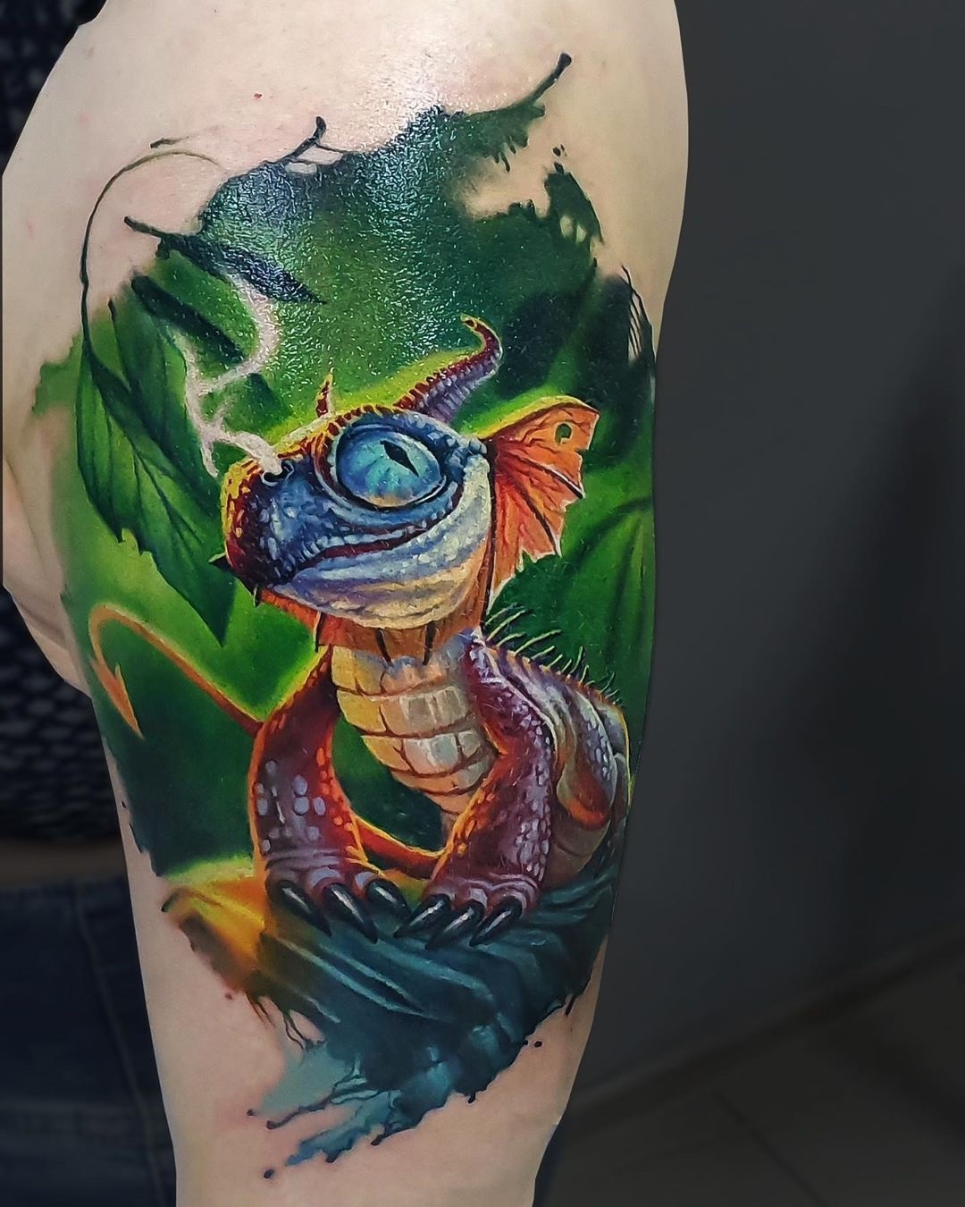 Ejderha dövmeleri popülerdir. Ayrıca öncelikli alanlar makro dövmelerdir. Bunlar, yırtık insan etinden bakan dev ejderha gözleri olabileceği gibi, ejderhaların kafaları da olabilir.