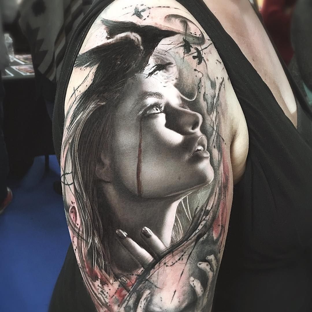 İdeal alanlar omuz ve önkoldur. Kasların her hareketi ile gerçekçi çizim canlanacak. Portreler, çizim çizimleri, gerçekçilik ve kara işi kombinasyonu burada harika görünüyor.