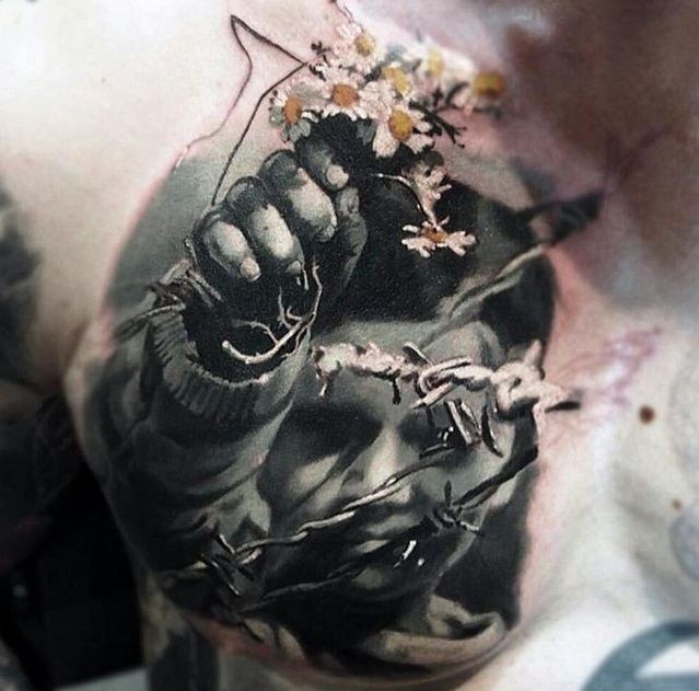 Çoğu zaman, göğüs ve kollara gerçekçi dövmeler yapılır. Bunlar fiziksel olarak gelişmiş bir vücut için en başarılı yerlerdir. Bir usta, dövmenin belirli bir müşteri için en iyi nerede görüneceğini tam olarak gören en iyi seçeneği belirlemeye yardımcı olabilir.
