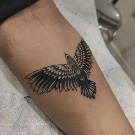 Dövme evrensel değildir, gurur ve nesnellik, otorite ve özgüven, hedeflere ulaşma arzusu, durumların nesnel değerlendirmesi gibi karakter özelliklerine aşina olanlar için uygundur. Efsanevi kartal, sahibinin hayatta kalmak için temel kaynakları (ateş, demir, bilgi) elde etmesine yardımcı olan bir tılsım olarak yorumlanır.