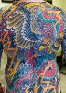 Doğu kartalı, sembolizm ve kendi detayı ile karakterizedir.... Genellikle geleneksel bir şekilde yapılır. Genellikle kuş bir ejderhanın özelliklerine sahiptir. Örneğin, gri kaşları ve bıyığı olabilir. Tüyler daha çok pullara benziyor. Geleneksel kompozisyonlar büyük ve karmaşıktır.