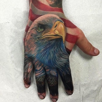 Elin farklı bölgelerdeki konumu, anlamın yorumunu biraz değiştirir. Bilekteki kartal, çevreyi etkileme arzusundan bahseder. Bilekteki dövmeler, olağanüstü doğaların bir seçimidir. "Kol" bir otorite ve özgüven işaretidir. Koldaki konum en popüler olanlardan biridir. Desen ve teknik seçiminde herhangi bir kısıtlama yoktur. Desenin boyutları konuma göre değişir. Hareket halindeki bir kuş kafası veya küçük bir kartal genellikle el ve yumruğa doldurulur.