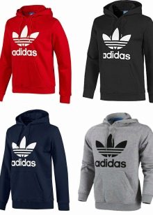 Adidas markası çok çeşitli giysiler üretmektedir: sadece sweatshirtler, raglanlar ve kapüşonlular değil, aynı zamanda güzel yüksek kaliteli ayakkabılar, tişörtler, dış giyim ve eşofmanlar.