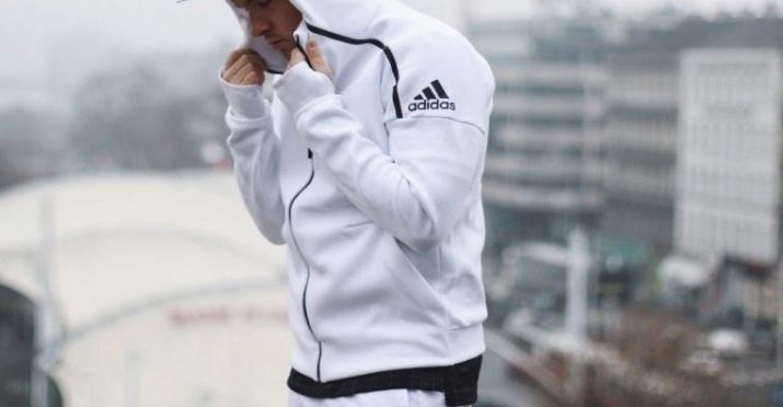 Spor Kapşonlu Rozeti Olması Gerekenler - spor müsabakalarından sonra dinlenmek için kıyafetler. Model yumuşak, dokunması hoş bir yapağıdan dikilmiştir. Ana dekorasyon unsuru, yonca ile göğüste hacimsel Adidas yazısıdır.Çeşitli renklerde sunulan Adidas özel spor ayakkabılar, görüntüyü organik olarak tamamlayacak.