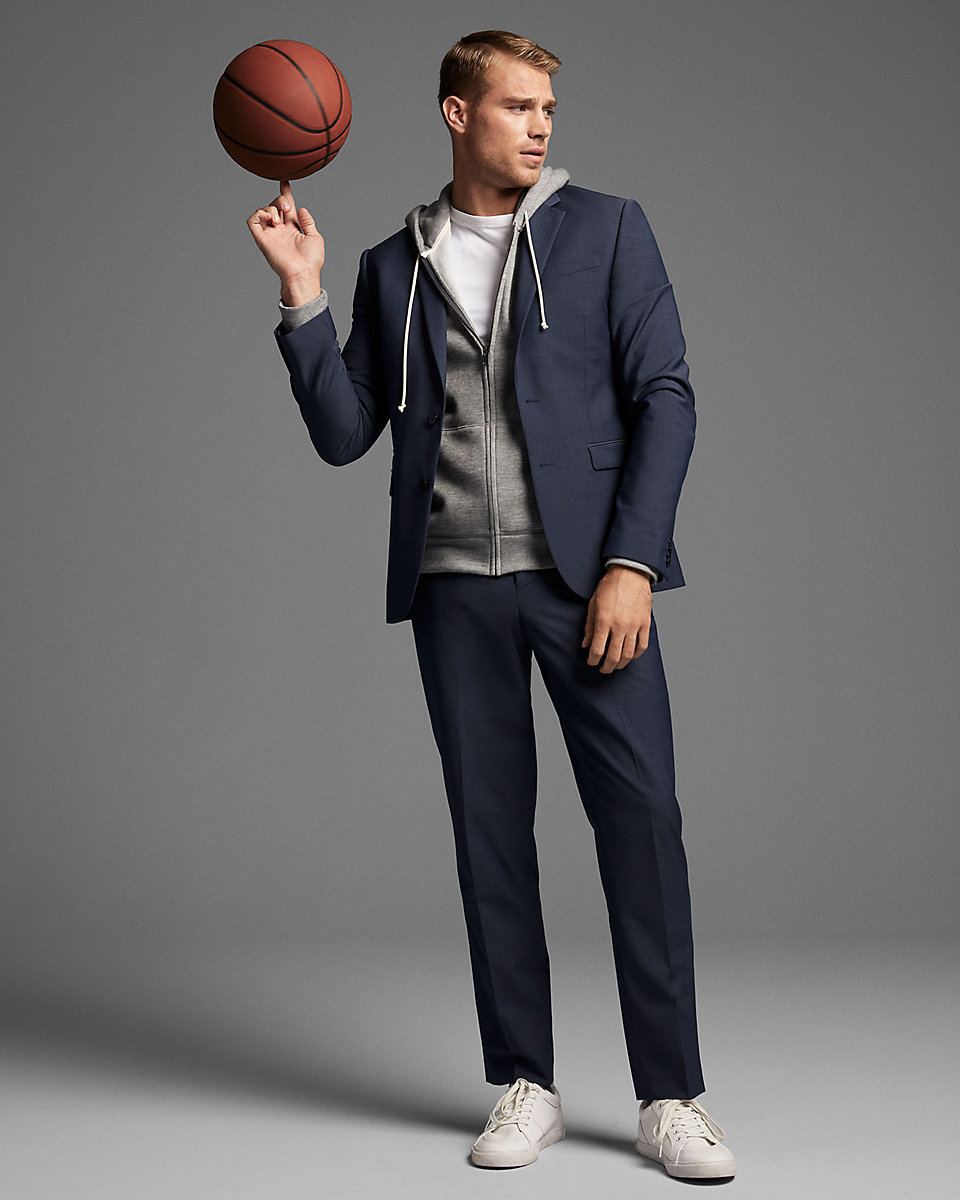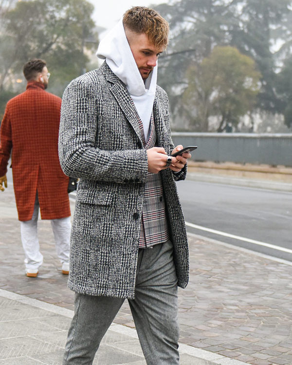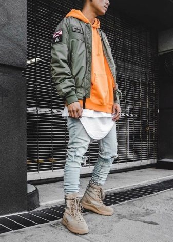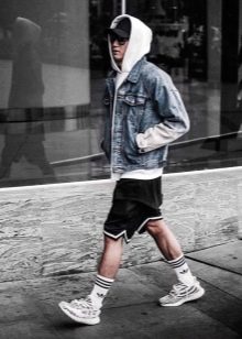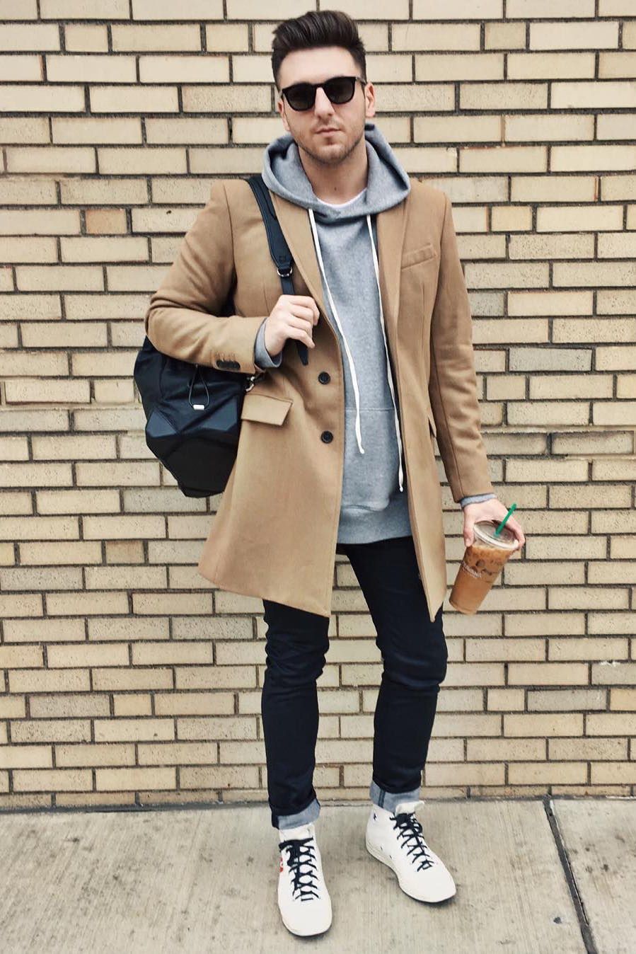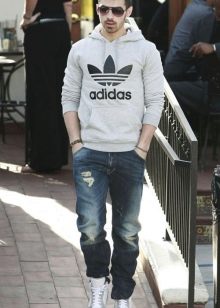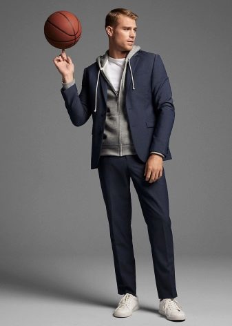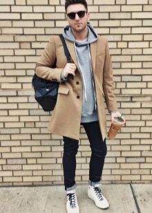 Modern moda, kapüşonu klasik dış giyim ile birleştirmenize olanak tanır, örneğin siyah düz bir erkek ceketi veya hafif kruvaze kırpılmış bir ceket. Bununla birlikte, böyle bir görüntü için sweatshirt'ün parlak renkleri çalışmayacaktır, nötr ve tercihen açık renkleri seçmek gerekir: beyaz, gri, süt, krem. İçin hafiflik ve dinamizm izlenimi vermek için, görüntü hafif bir monokrom temelinde oluşturulmuştur: açık gri sweatshirt, hafif kot pantolon, hafif spor ayakkabılar.
