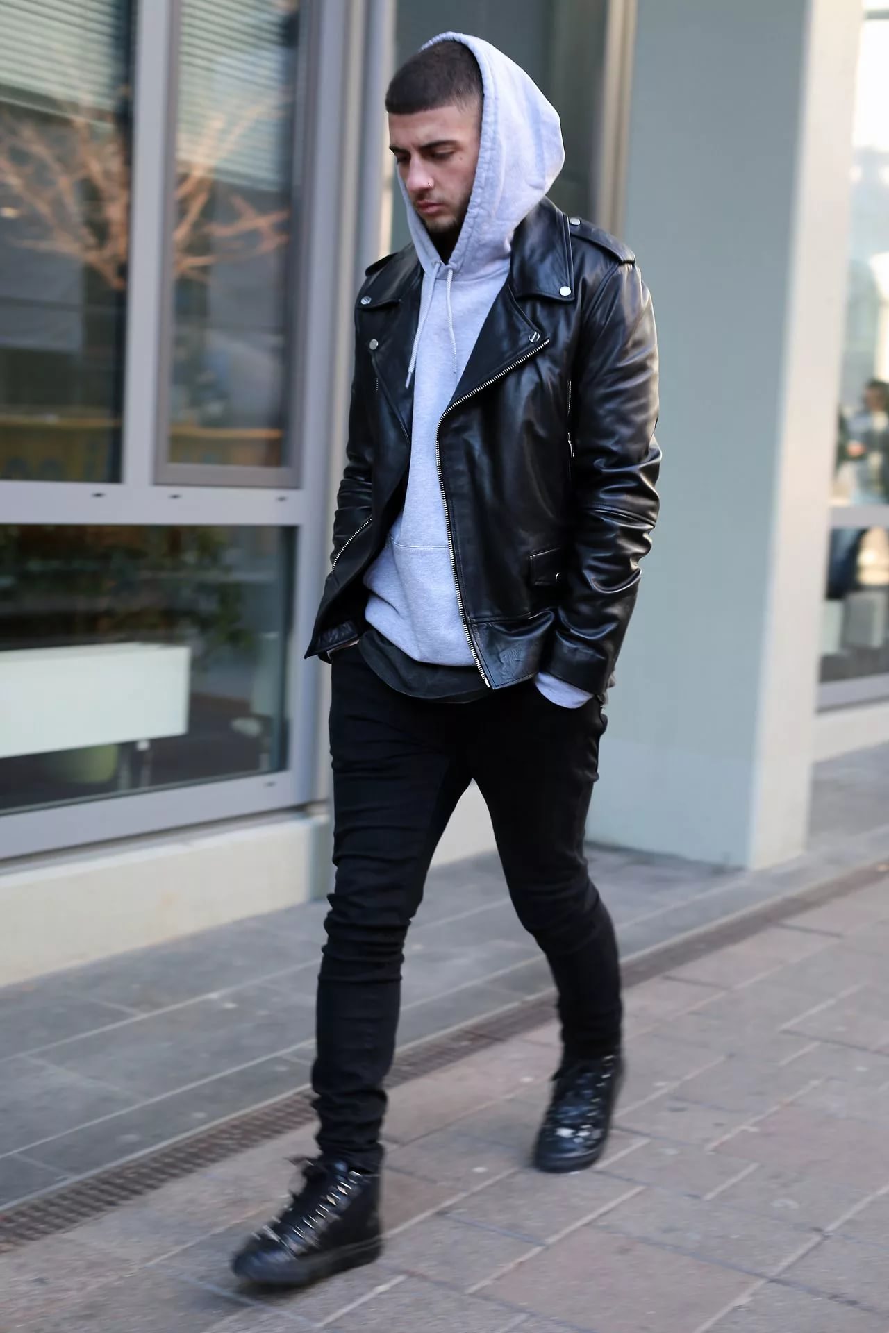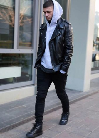 Kapüşonlular deri ceketlerle mükemmel bir şekilde birleştirilir. Ancak anlaşılmalıdır ki, Bu durumda deri ceket sadece bir kesimdir, ancak sahibinin ağır metale olan bağımlılığını gösteren bir ceket değildir. Ceketler hem deriden hem de yumuşak kahverengi süetten veya geniş kadifeden yapılabilir. Görünümü klasik bir kot ceket ile de tamamlayabilirsiniz.Bu durumda siyah uygun olacaktır.