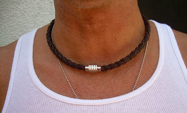 Erkekler için boyun takıları tek bir malzemeden yapılabilir veya birbirleriyle birleştirilebilir. Çoğu doğaldır, yani iyi görünürler ve belirli bir değeri vardır.
