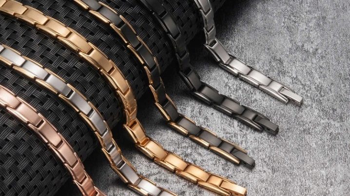 - Metal. Bazen bu aksesuarlar mıknatıslar kullanılarak yapılır. Bu tür şeyler genellikle sağlığına dikkat eden ve gücüne inananlar tarafından seçilir. Bu tür aksesuarlar basit ve özlü görünüyor. Ancak sıradan metal bile şık ve ilginç mücevherler yapmak için kullanılabilir.Tek sorun, bazılarının bazı türlere karşı alerjik reaksiyon gösterebilmesidir.