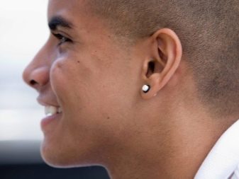 Bir erkek kulak piercingi yaptırmaya karar verirse doğru aksesuarı seçmeli ve takabilmelidir.. Gençler açısal özelliklere sahip küçük halkalar uygundur ve tamamlayınız insanlar - küçük karanfiller.