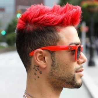 Erkek boyama için başka bir seçenek boyama. Çevrenizdeki insanlar yeni yoldan çok şaşıracaklar. Renklendirme için renklendirme şampuanları, kına, basma, özel tozlar ve püskürtücüler kullanılabilir.