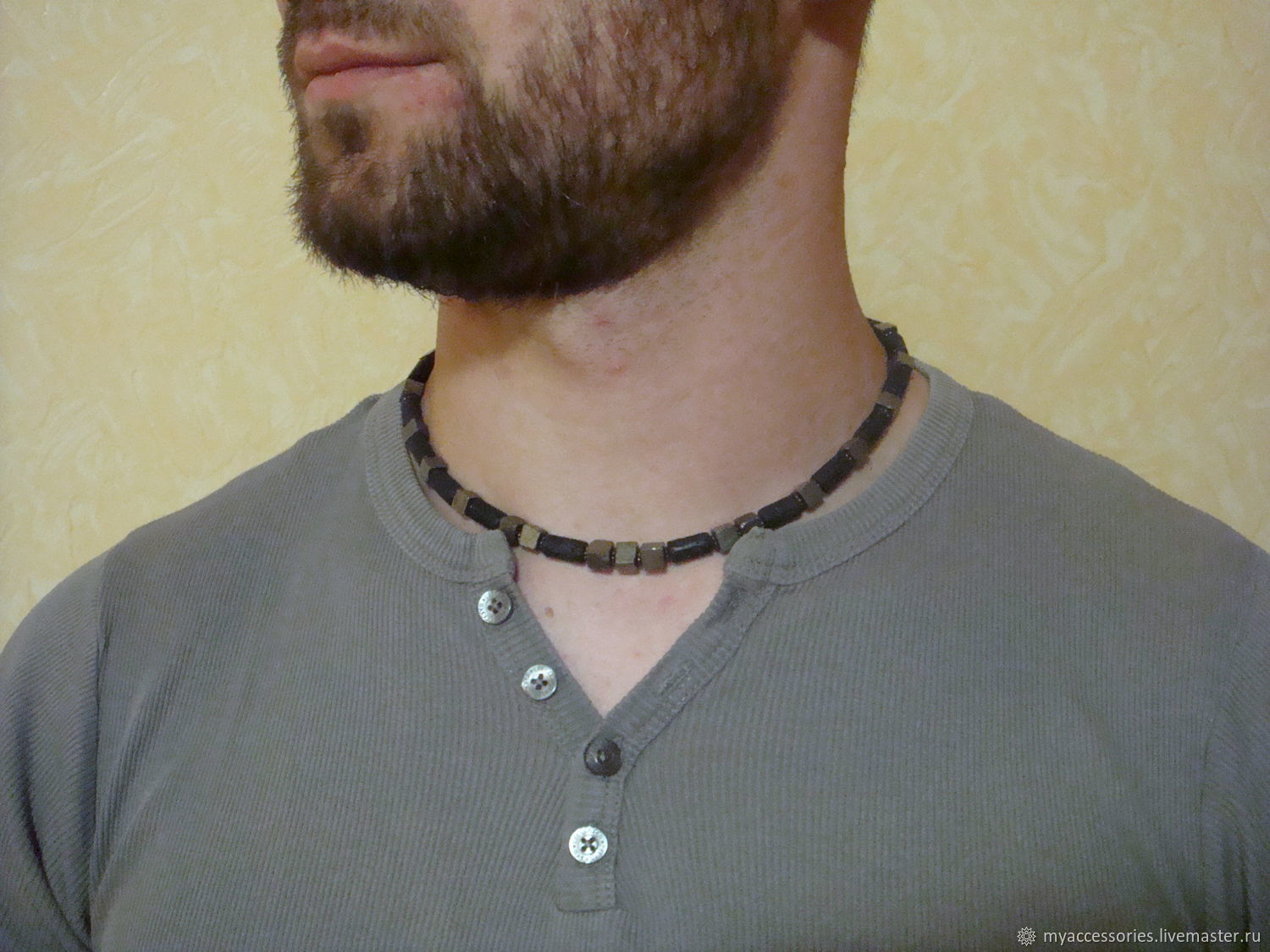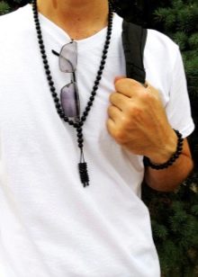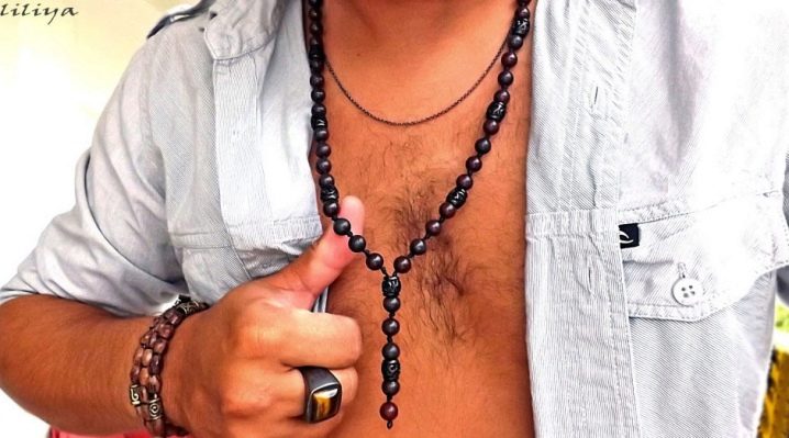 Les colliers représentent perles courtes pour hommes qui s'enroulent autour du cou. Une suspension, par exemple, d'un minéral médicinal peut être présente dans la composition. Le modèle de tour de cou le plus populaire est un cordon en cuir de différentes épaisseurs avec des perles. Il existe des modèles minimalistes avec une alternance de perles solides et colorées. Les étrangleurs aiment particulièrement les représentants de diverses sous-cultures.