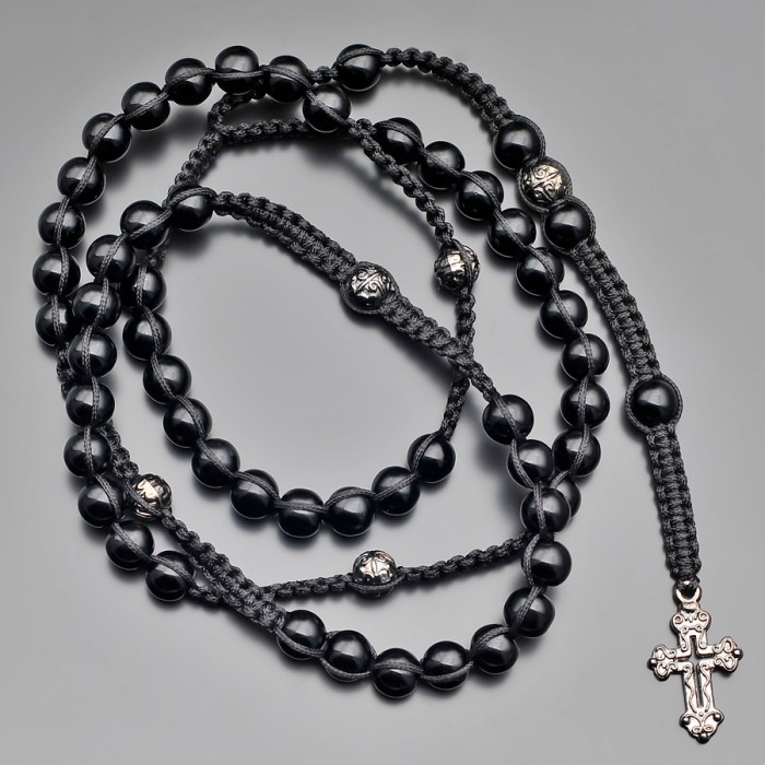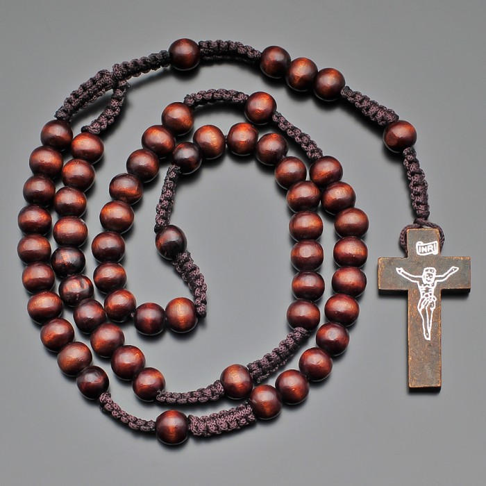 Perles en forme de chapelet appelé la roseraie... Ils existent en différentes longueurs, peut être porté autour du cou ou enroulé autour du bras comme un bracelet. Les chapelets se trouvent en bois ou en pierres naturelles, moins souvent en nœuds de cuir et de soie. Les perles sont généralement de la même taille, mais il peut y avoir de gros éléments, y compris des pendentifs comme une croix. En même temps, cette croix n'a pas de sens sacré, n'étant qu'un ornement.